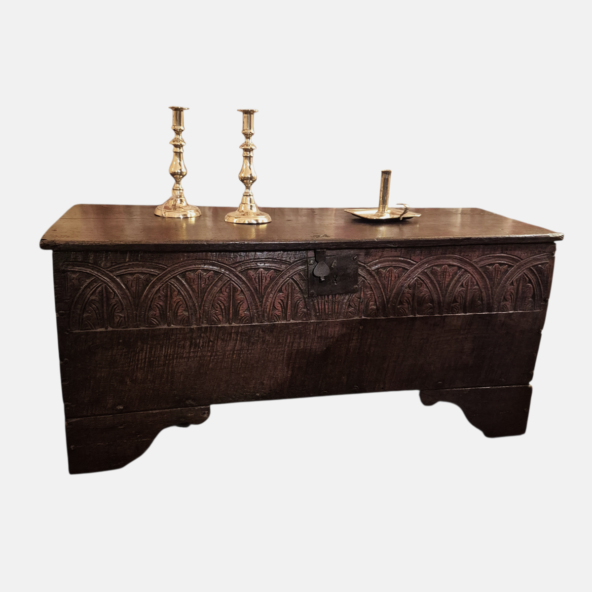 Oak Carved Coffer. Late 17th/Early 18th Century.