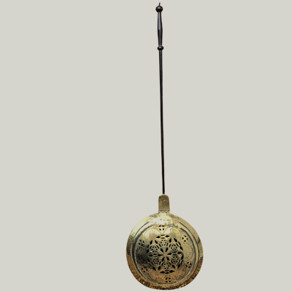 544 Brass Georgian Skimmer Rolled Bowl Metal Handle. Petal Design. Copper Rivets £30.00