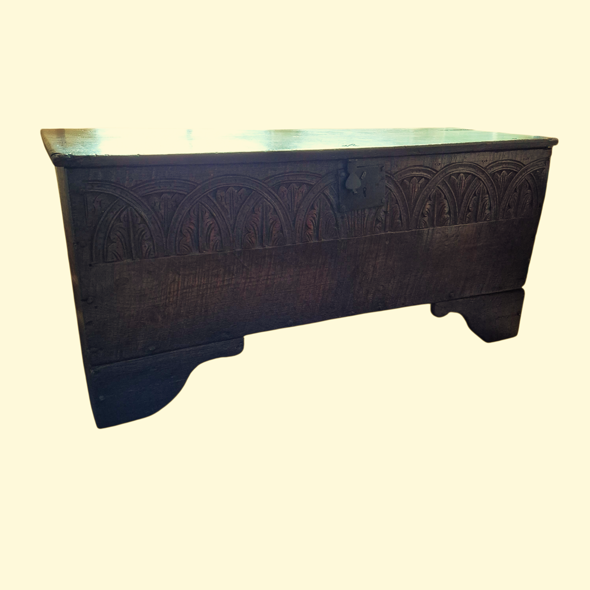 Oak Carved Coffer. Late 17th/Early 18th Century.