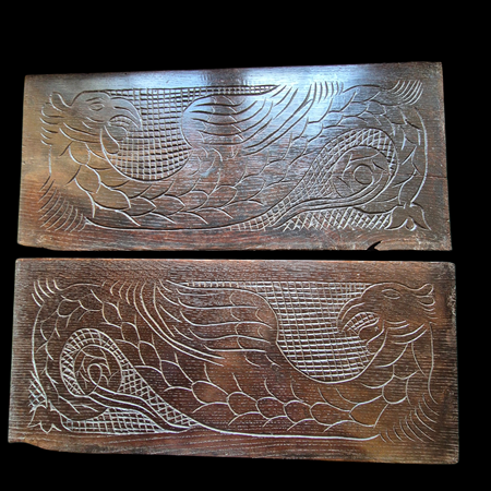Pair Oak Scratch Carvings. SOLD