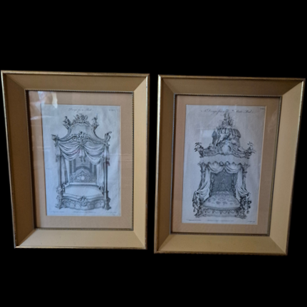 Pair Chippendale Bed Etching Print Plates