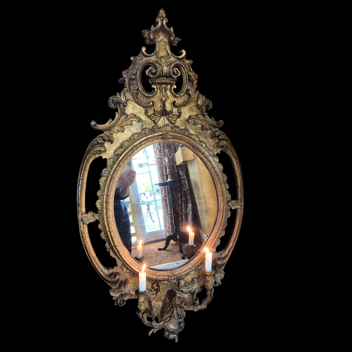 With a pair of candle sconces attached. C. 1840.