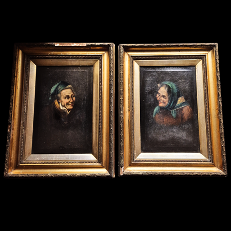 Pair Naïve Oil Portraits in Period Gilt Frames